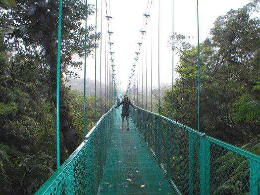 ![]() This gives a better view of the height of one of the bridges. Their heights range from about 30-50 meters and their lengths from 45-90 meters. A tours through the cloud forest on such bridges takes about 1.5-2 hours and costs $12-15. The forest can also be viewed quickly through a series of speedy zip-lines. |
