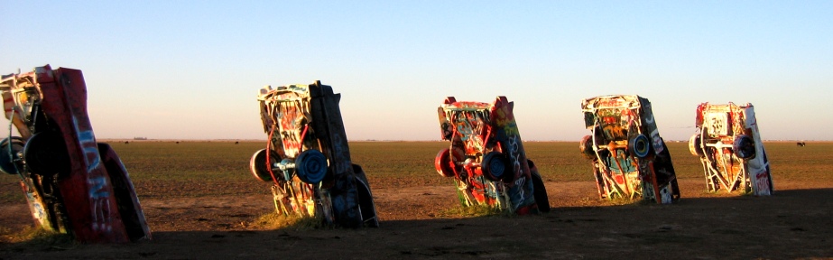 Above and below: The colorful and unique Cadillac Ranch near Amarillo TX. Come visit and add your own graffiti if you can find a blank spot. |