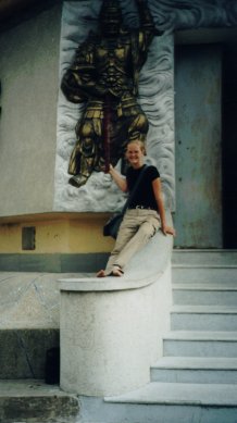 Dalat The Vietnamese seem to have a penchant for the pseudo western. This waterfall had giant fiberglass animals and mushrooms (like the one I'm leaning on) in the style of Disney etc. and ponies in wild west getup where one could dress like a cowboy and have ones picture taken with the pony. While mysterious to my fellow westerners, the Vietnamese tourists appeared very enthusiastic. |